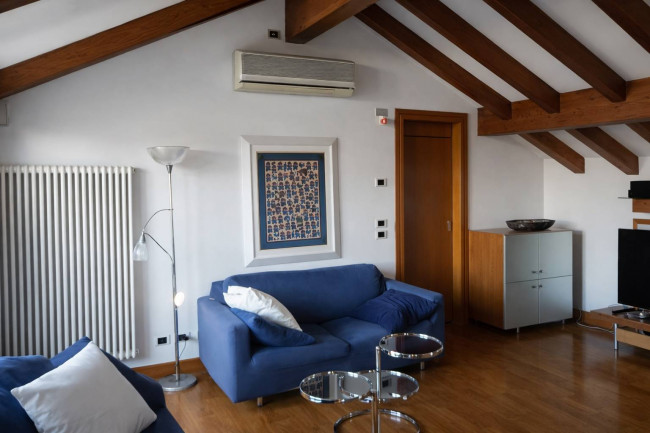 A ridosso delle mura storiche di Treviso, in una palazzina esclusiva di poche unità, proponiamo raffinato Appartamento mansardato di 108 mq, posto all'ultimo piano.