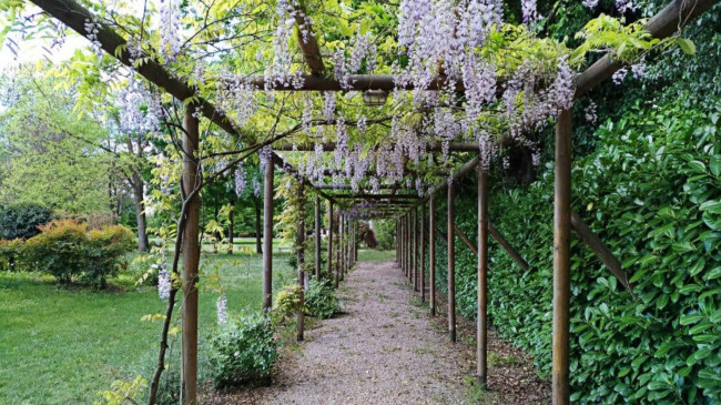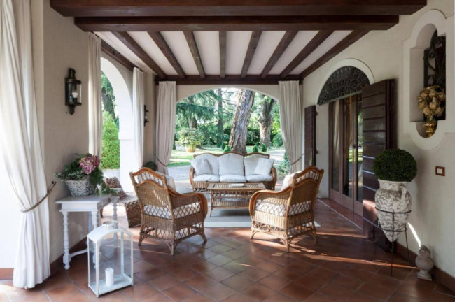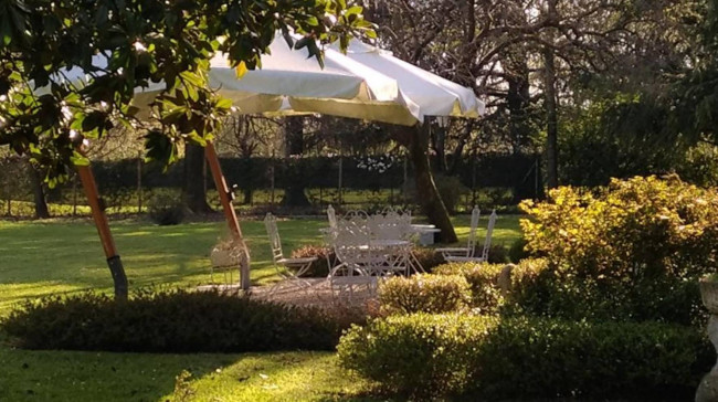 La Villa è immersa in oltre un ettaro di parco privato, con alberi secolari, piante mediterranee, un pozzo antico, una chiesetta di famiglia e un elegante giardino all'italiana con siepi, statue e fontane, scenario ideale per soggiorni di charme, eventi esclusivi e cerimonie.