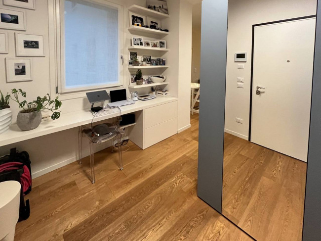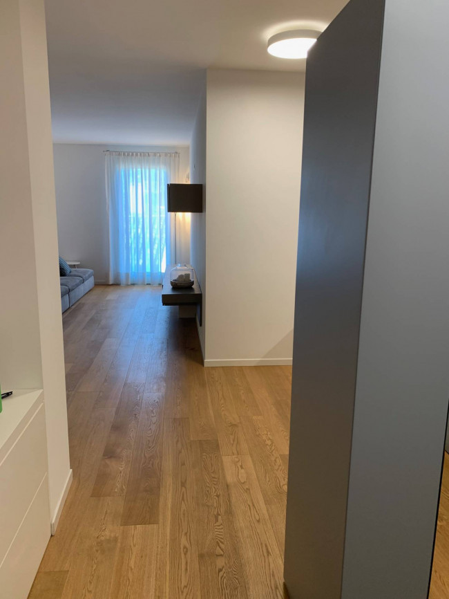 L'Appartamento è completamente arredato in ogni sua parte, completo di elettrodomestici, tutto pavimentato in legno di rovere, ha serramenti in legno, riscaldamento a pavimento centralizzato di ultima generazione, impianto di climatizzazione canalizzato e cassetta di sicurezza.